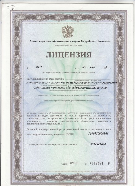 Полное наименование образовательной организации* Муниципальное казенное образовательное учреждение "Адагинская начальная общеобразовательная школа"