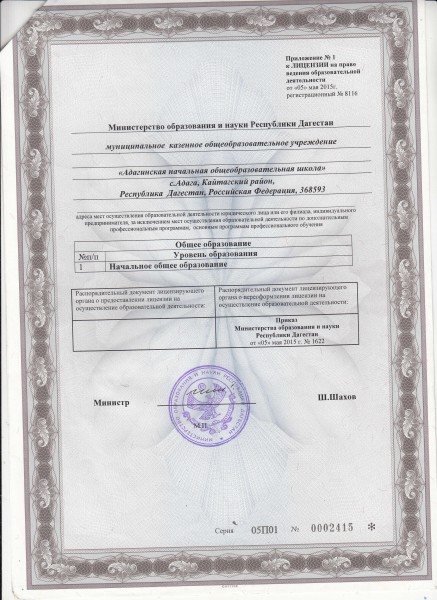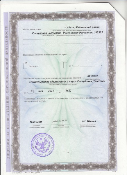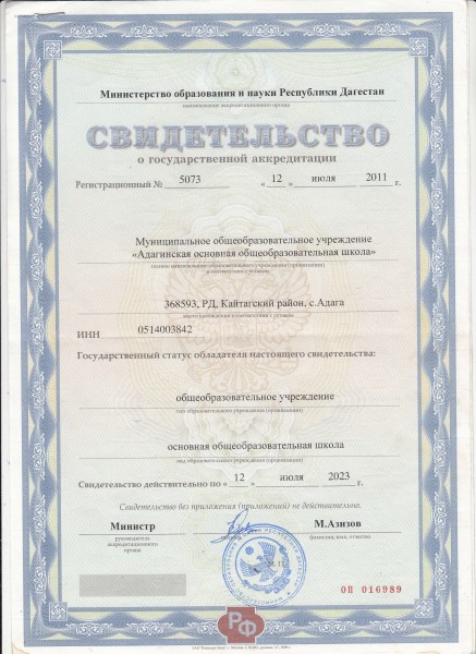 Адрес местонахождения образовательной организации* 368590, Республика Дагестан, Кайтагский район, с. Адага